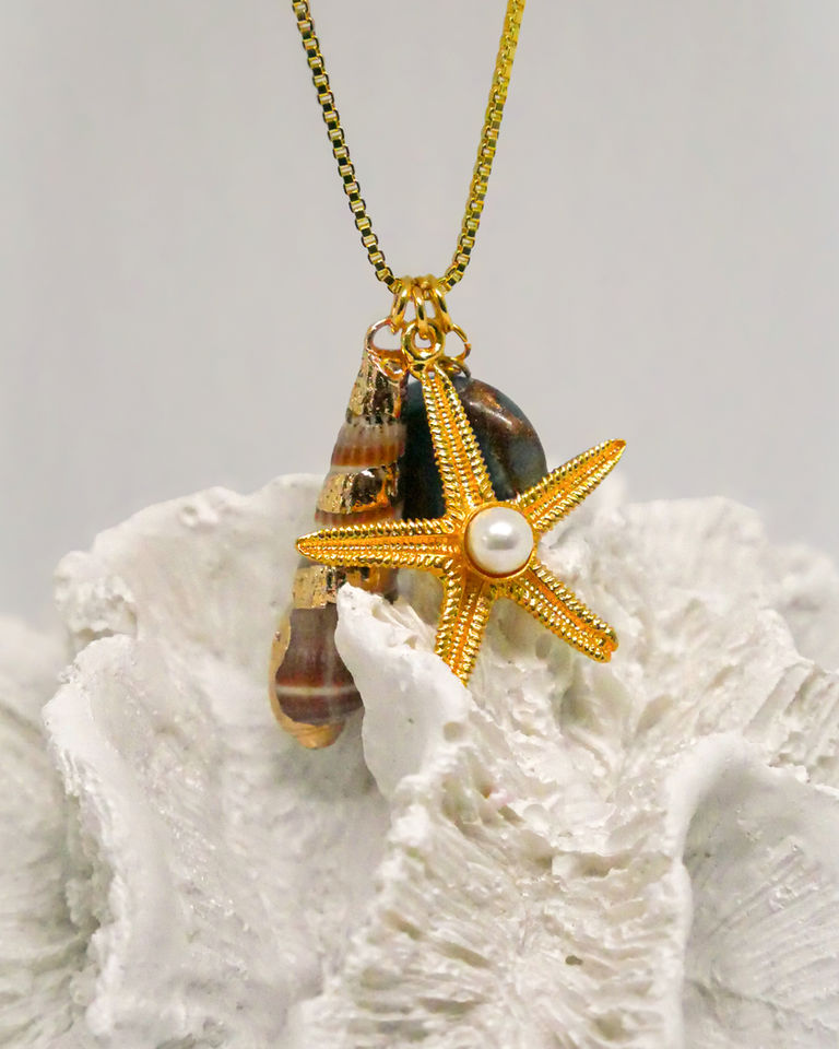 Charms: Gold-filled starfish and shell with gold accents, hand-finished for lasting shine