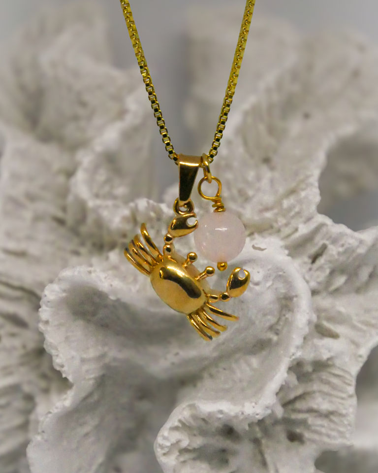 Celebrate whimsical coastal charm with this delicate necklace, featuring a soft pink quartz stone and a charming gold-filled crab charm. The gentle pink hue of the quartz is beautifully complemented by the warm gold tones of the crab, creating a playful yet sophisticated design. Handcrafted with care, this necklace is perfect for layering or wearing as a standout statement piece, bringing a touch of the ocean wherever you go.