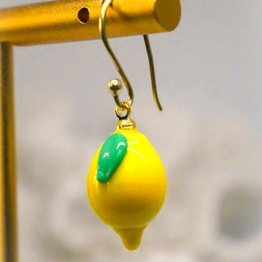 Bring a touch of whimsy and vibrant elegance to your look with these Murano glass lemon earrings. Each handcrafted piece captures the cheerful yellow hues and delicate translucence of Murano glass, making every earring uniquely radiant. Paired with subtle gold accents, they are a perfect blend of artisanal craftsmanship and joyful sophistication, ideal for adding a pop of colour to everyday wear or a special outfit.